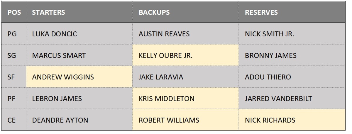 The above projected depth chart was originally a projection of the Lakers starting lineup and rotation for next season after spending $100 million in open cap space on an extreme roster makeover to optimize Luka Doncic.