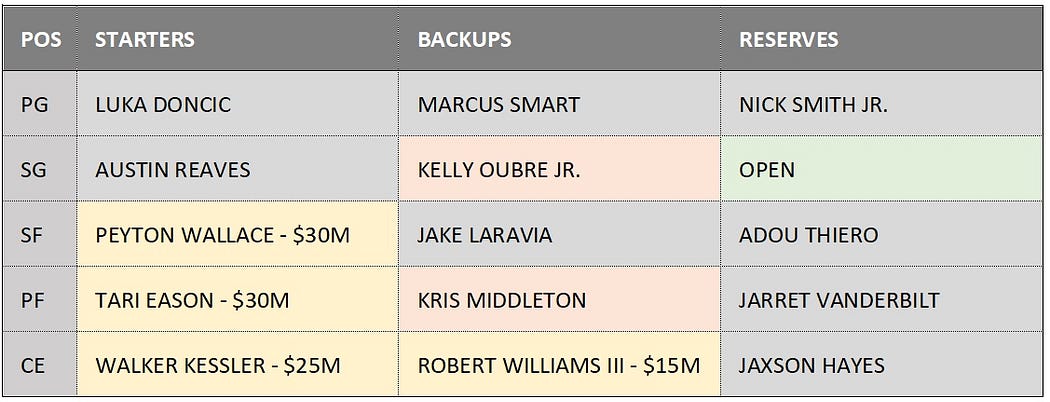 But alternatively, the numbers are also saying that there’s an elite starting lineup Redick can build around Luka, Austin, Marcus, and Jax and a second starter-quality lineup built around LeBron, Rui, Vando, and Deandre.